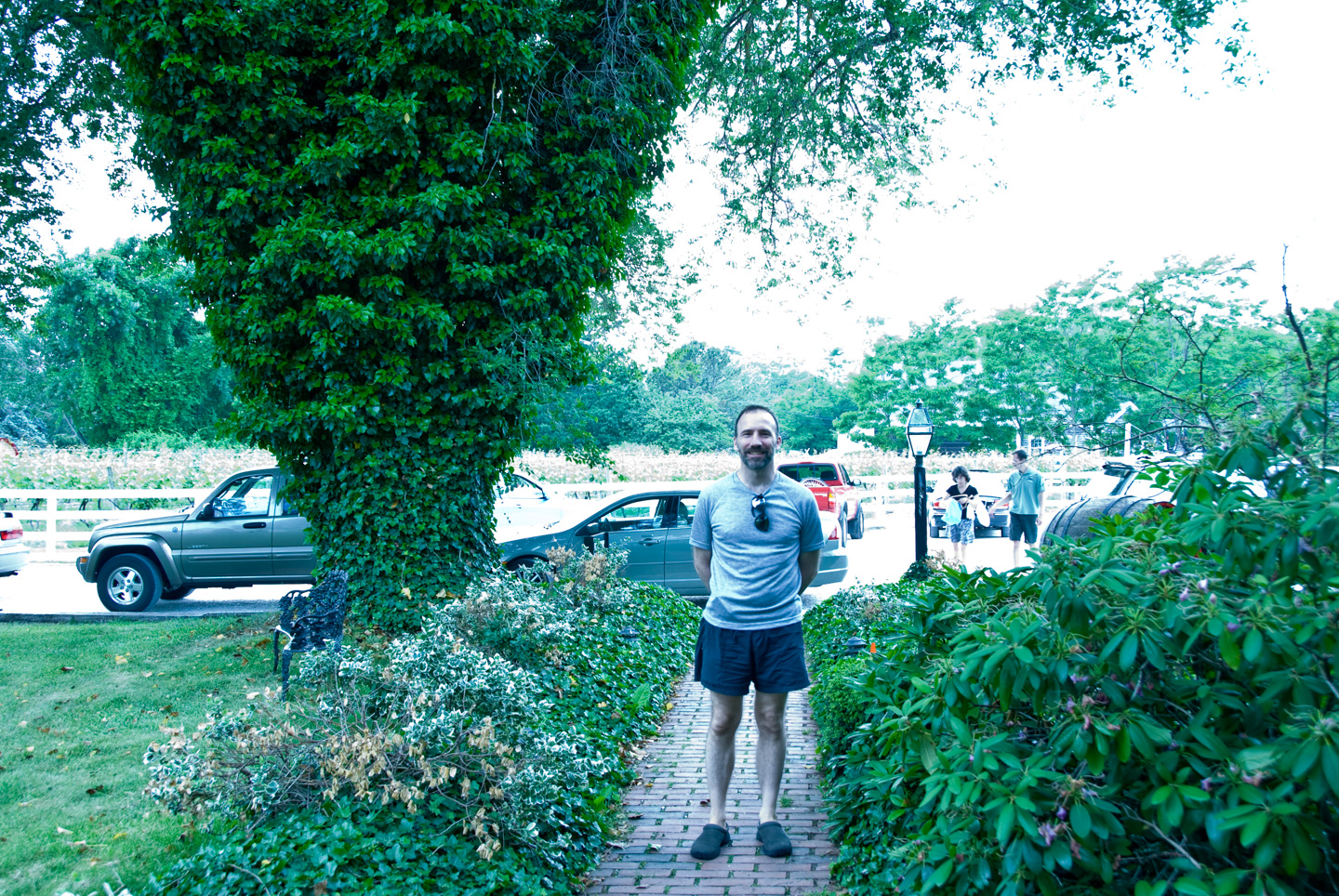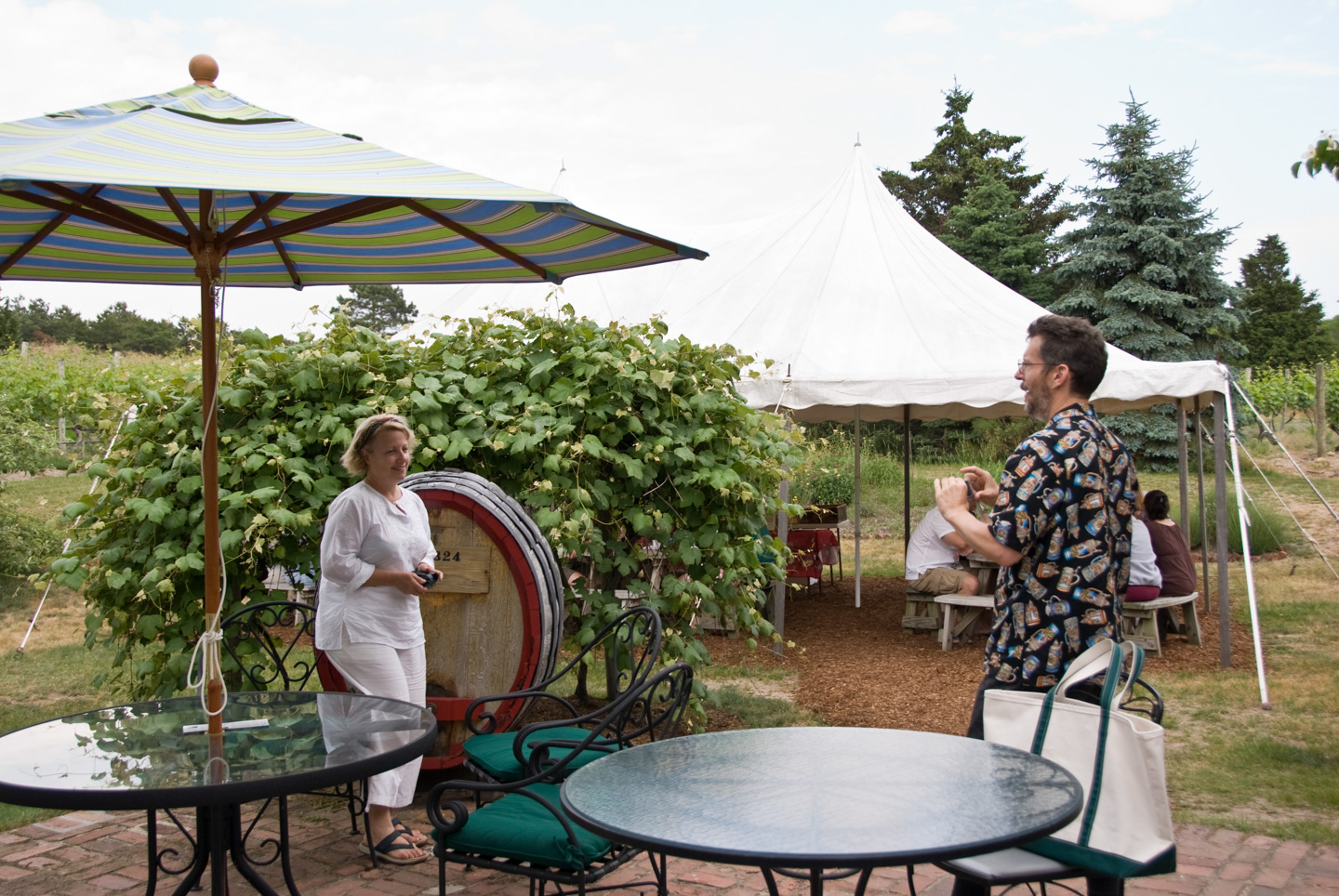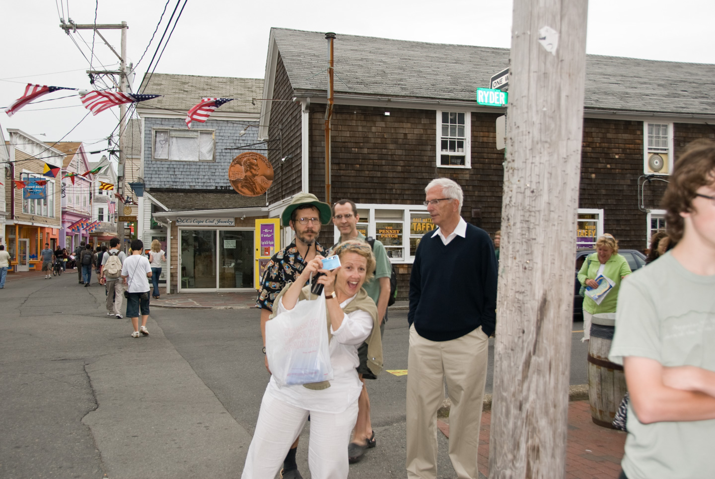 We arrived on Saturday. Clifton was able to make it up. Paul and I made supper that day. Sunday we all walked into town. Chatham has a nice down-town area, with a good selection of little shops. I got myself the stylish hat you see in some pictures. Then we drove up to Provincetown. On the way we stopped at a little winery in the next town over, Truro. Unfortunately we missed the tour, so we just wandered around a bit. Matt & Kelly bought a bottle to use in the wine tasting later in the week.