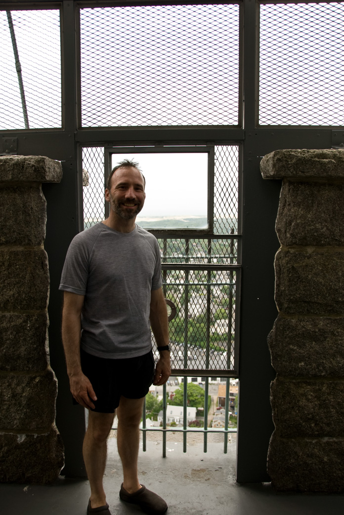 We then arrived in Provincetown proper. We parked in the parking lot at the Pilgrim Monument. Paul and I decided that we would have to make another trip there sometime to spend more time in the surprisingly large museum that is at the bottom of the monument. One of the items of note in the museum was a little display on Willard Sears. He designed the monument. He also is the person who expanded Quason Lodge, where we were staying, from a small house to the large one it is now. The monument was open for walking to the top. Along the way some of the stones were polished and engraved with the name of the sponsor. Most were Massachusetts towns. We thought this one was interesting.