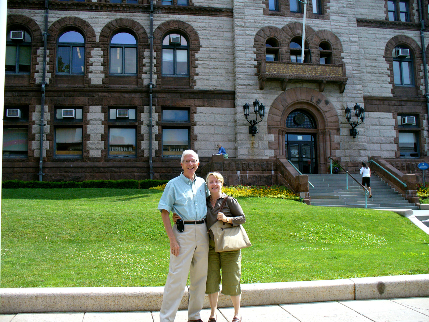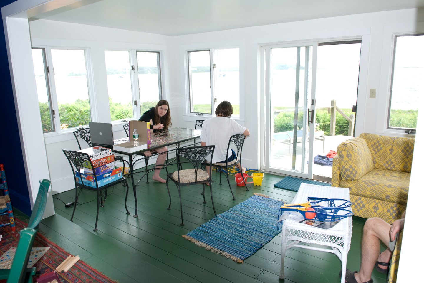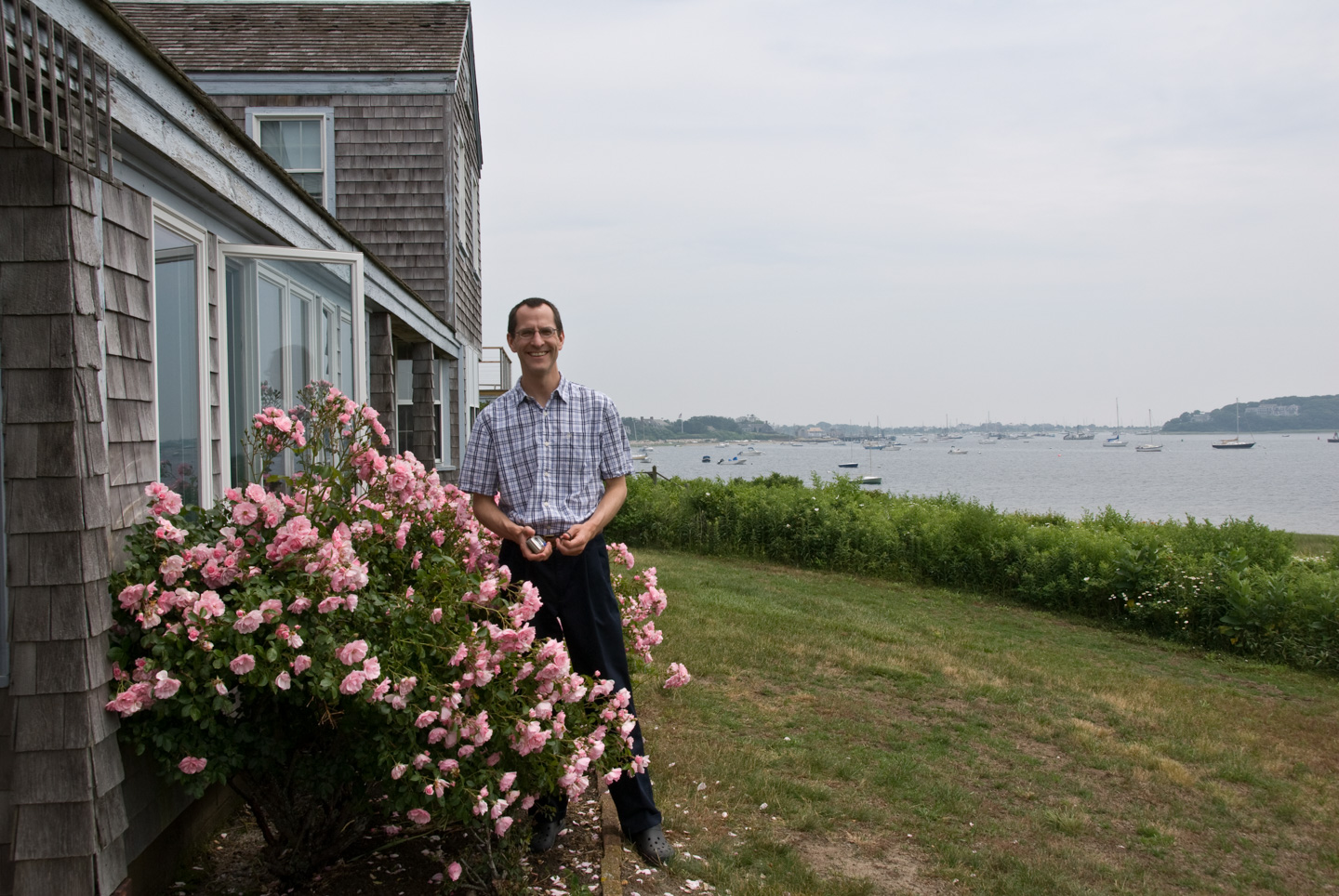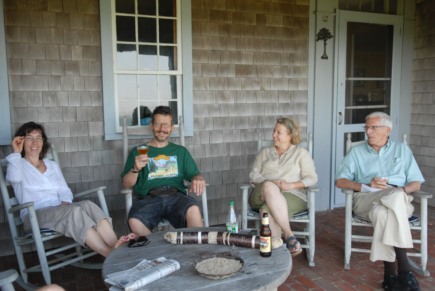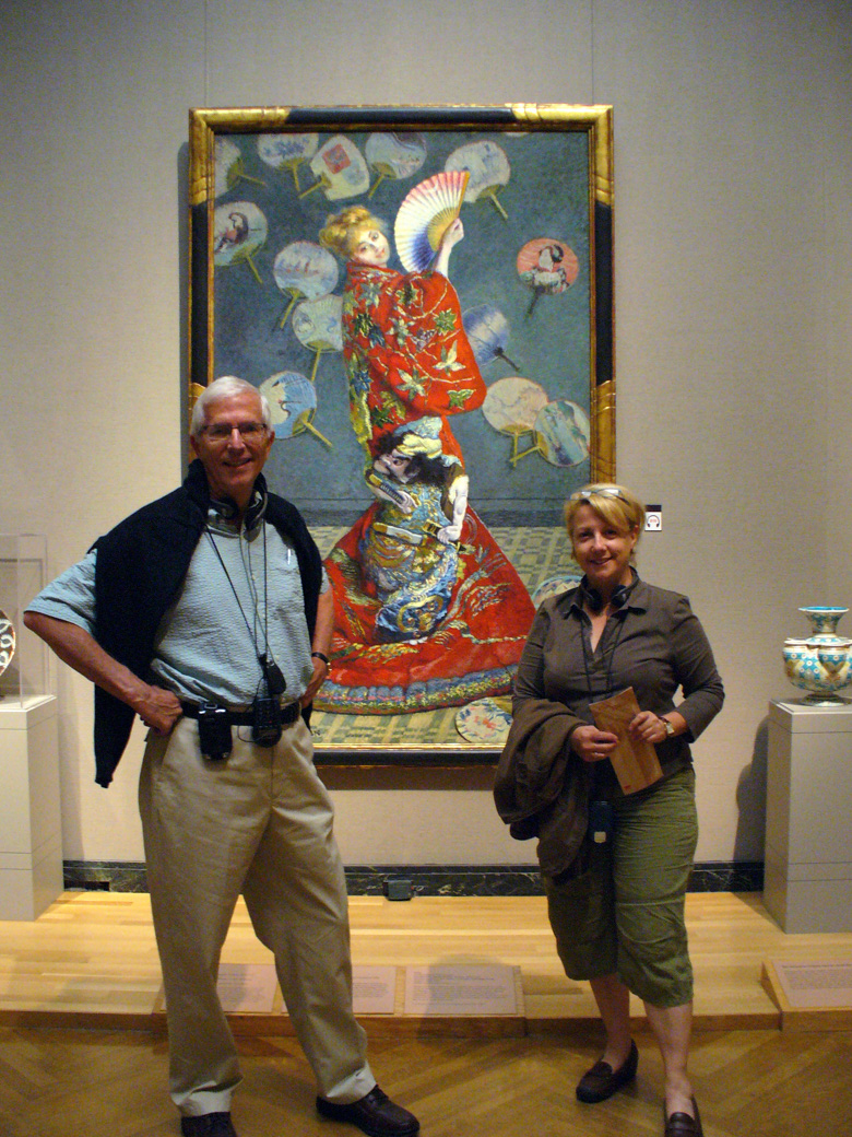 This page will start with a slight back-track in time. Here are a few pictures from Jim & Cristina's visit to our house in the week before the Cape Code trip. A quick overview of their time here: Arrived Monday evening. Tuesday relaxed. Wednesday relaxed. Thursday relaxed. Fri... Ok, just kidding. Tuesday they did relax. But Wednesday they went to Plymouth and visited The Plimoth Plantation. Thursday I took the day off (unfortunately, Paul had to work) and we went into Boston to the Museum of Fine Arts. Great museum. The painting in the picture is a Monet. We went to supper at The Bombay Cafe, which is the Indian restaurant Paul & I like. Friday they went to Newport RI.