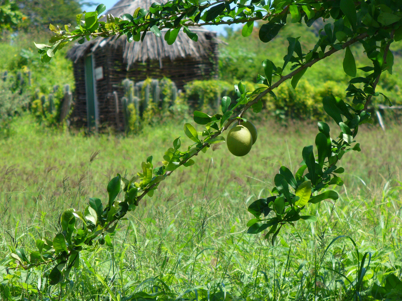She gave us some 'Bonaire Cherries' from this bush. And this other plant shows some gourds that are made into serving utensils and bowls (examples of which were in the inside portion). I'm including the 3rd picture for comparison to their website (linked above), where they have an earlier picture of this same limestone furnace (in the virtual tour section of their site).