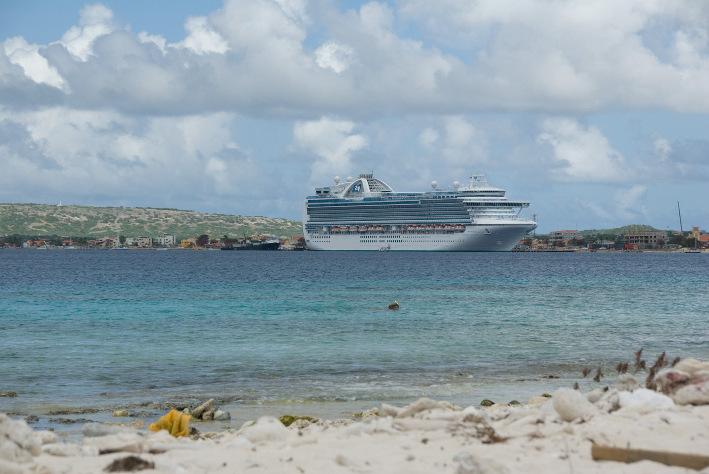 One more set of comparison pictures, but this time of cruise ship vs no cruise ship. The picture covers the same span of shoreline. We are NOT fans of the cruise ship descending on little Bonaire. Bonaire residents seem to have mixed opinions on it, from what we can gather.