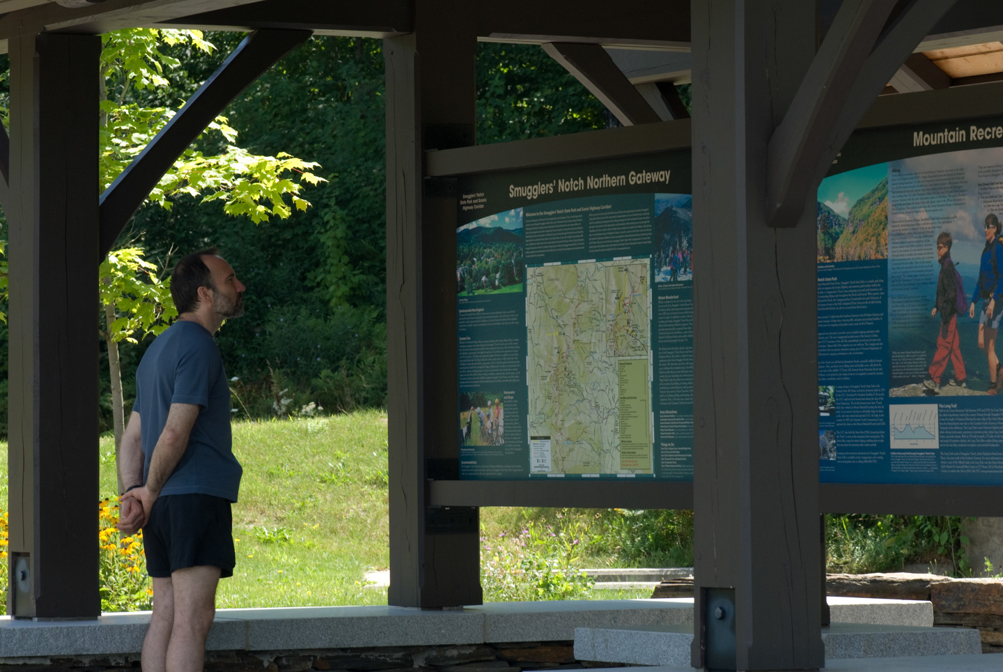 Then we continued down Rte 108. On the other side of Smugglers' Notch was a rest area with some information on the area. Stowe Ski Area is on the Stowe side of the mountain, and Smugglers' Notch ski area is on the Jeffersonville side of the notch.