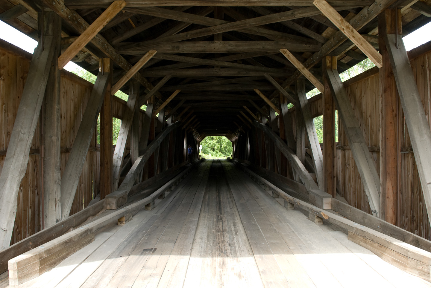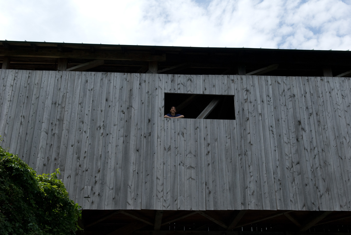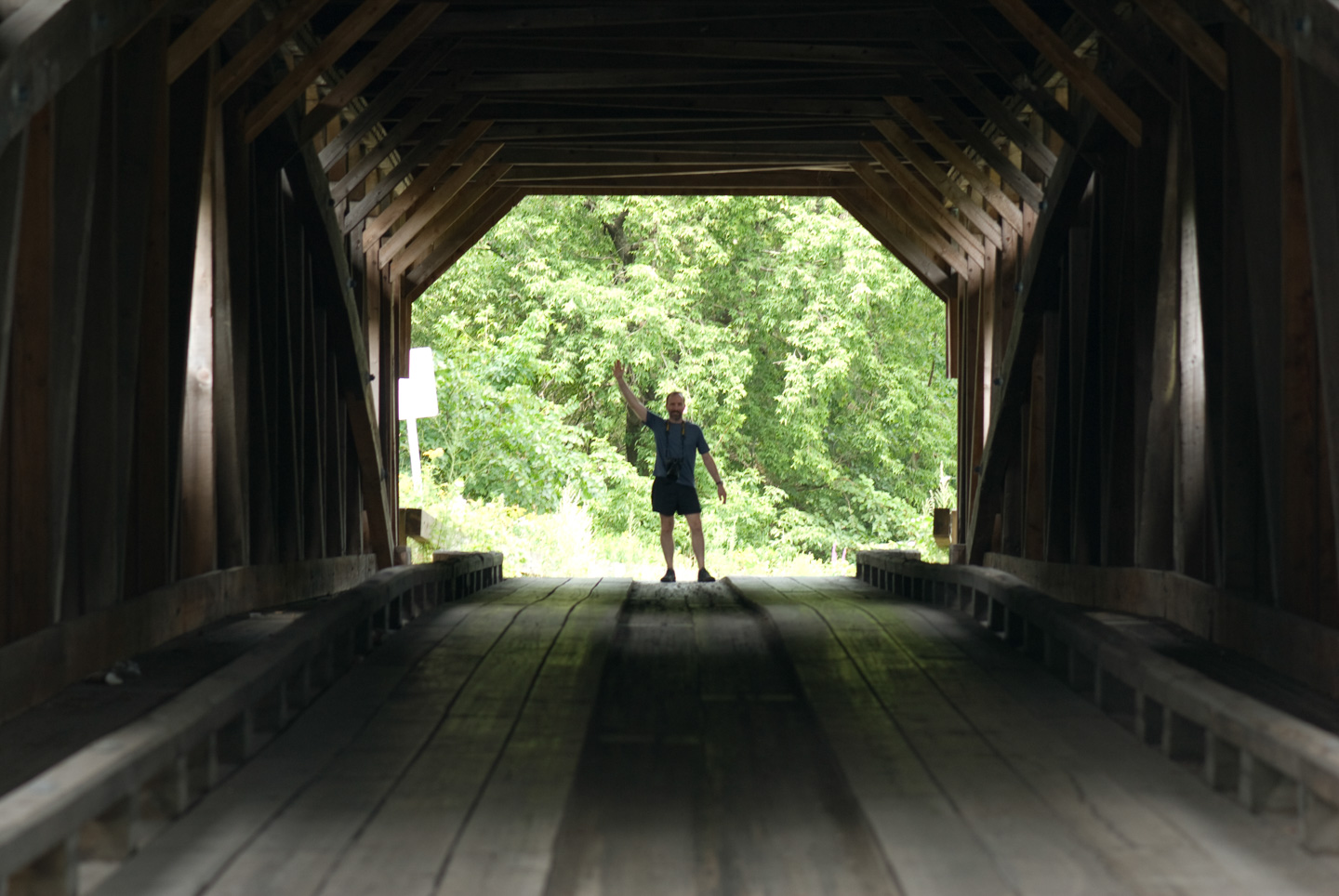 We stopped for lunch in Jeffersonville. We ate at 158 Main. While there, we picked up a tourist map of Jeffersonville and Morrisville. This goes along with the tourist map we picked up of Stowe. These maps are surprisingly good. They highlight advertisers, of course, but if you learn to read them they have a lot of other information on them as well. We decided to do a loop and drive back through Morrisville and then down again on Rte 100 back to Stowe. In Jeffersonville was a nice covered bridge over Lamoille River.