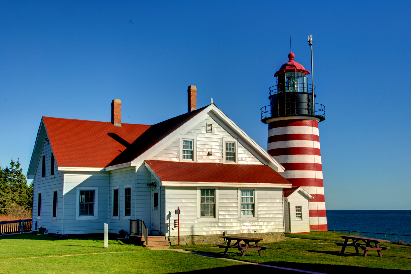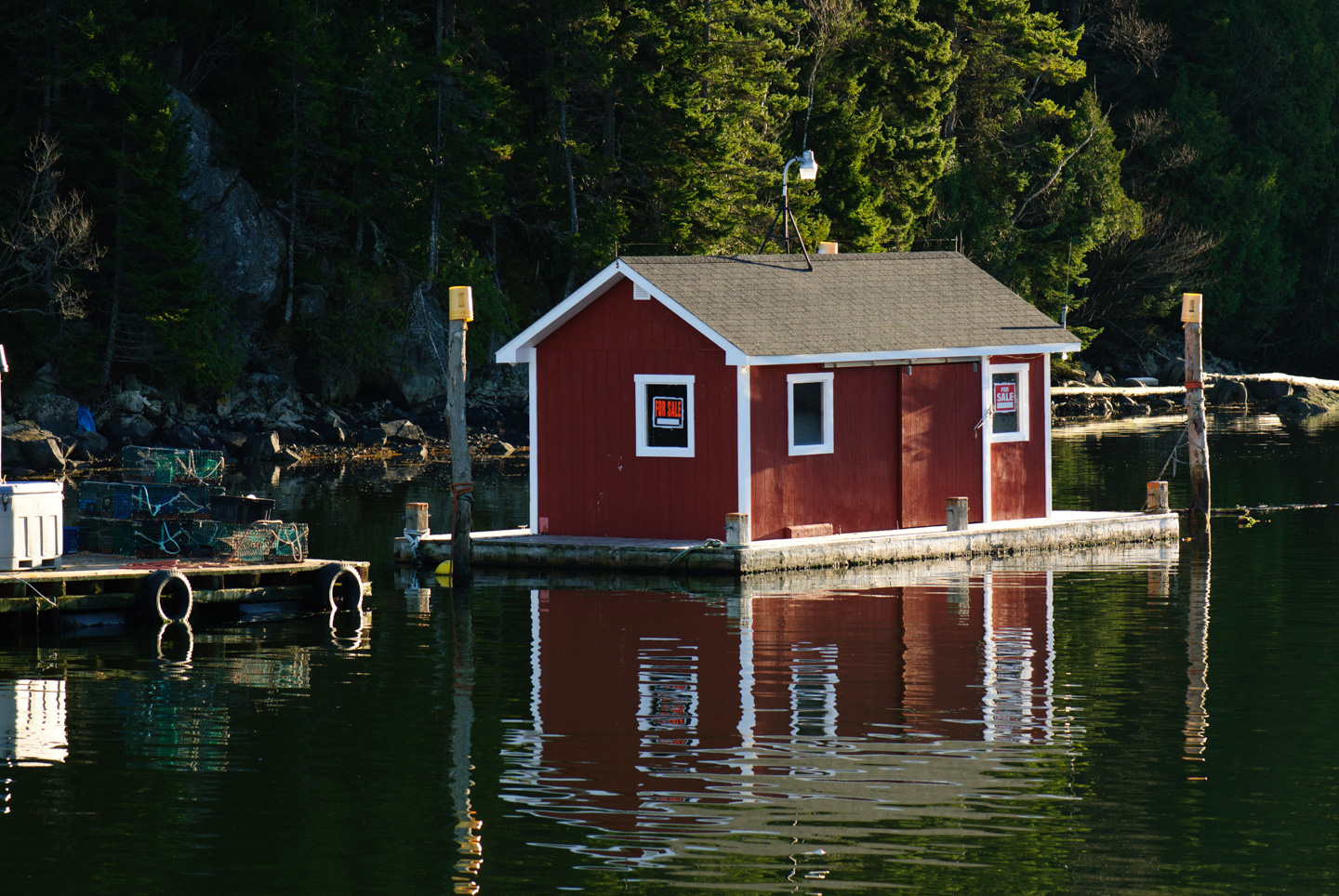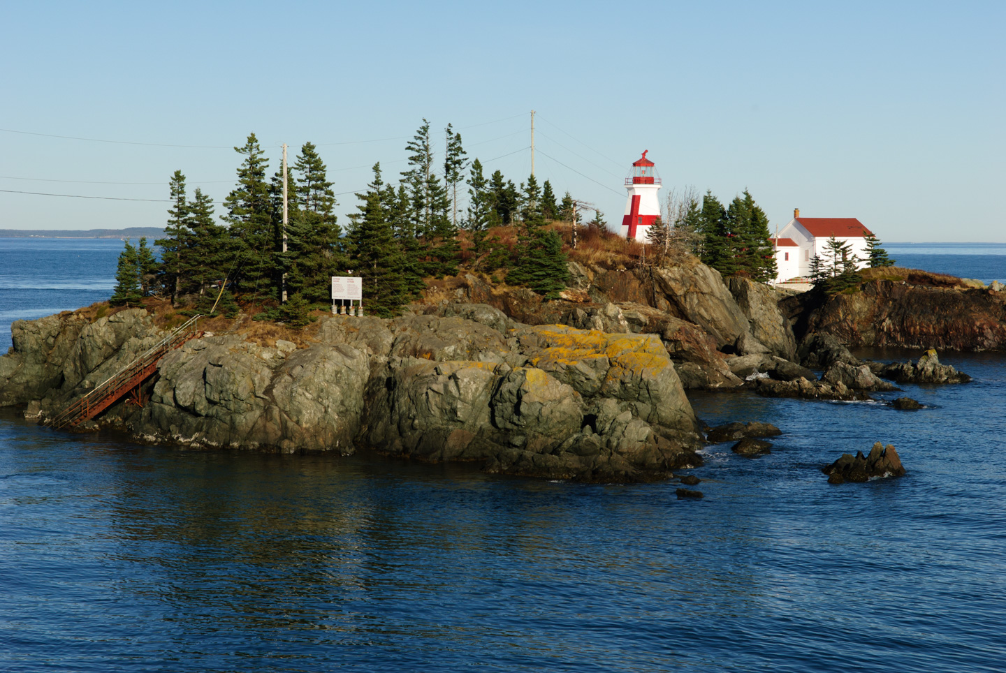From here we headed up to the northern point of the Island to the East Quoddy Head Lighthouse. This lighthouse resides on a small island that is reachable during low tide, but we had to stay on the main island and take our pictures from there. I think that we got some nice shots. This is a beautiful lighthouse and disappointing that we were not able to get closer, but we made the best of the situation, just like we did all week. On the way, there is a house with an adorable yard decoration. We also stopped at a working port on the island. There were numerous 'house boats' where the fisherman could work & get out of the weather. One was for sale.