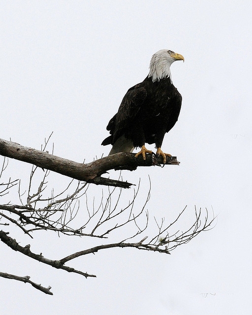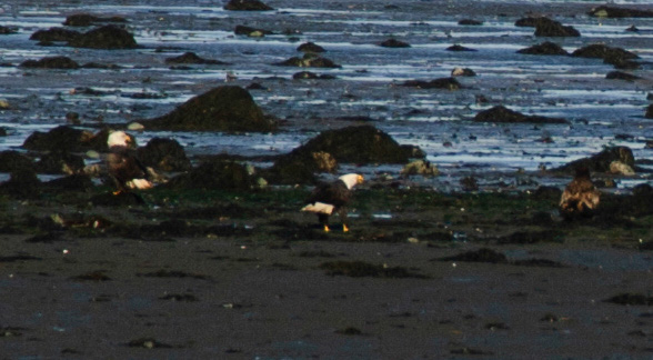 Our last full day (Friday November 12th) was the best weather we have had all week. The day was crystal clear, and no wind to speak of, and not a cloud in the sky. Breakfast was at Helen's again. Difficult to argue with the convenience of being able to walk from our room to the restaurant. We were up early and out early. First stop was in Lubec along the mud flats. It was low tide and the mud flats were very exposed. Paul noticed what he thought were hawks flying overhead so he pulled off in a pull over. Looking out into the mud flats we noticed a bald eagle perched on an exposed rock head. Out came the binoculars, then the amazement truly set in: the mud flat was loaded with bald eagles. With the binoculars Paul scanned the flat and counted 25 bald eagles! It was truly amazing. The eagles were a ways out. Paul used the zoom lens & tripod, & luckily the bald eagles are barely visible in the picture. I borrowed another pic of a bald eagle to give you a better view.