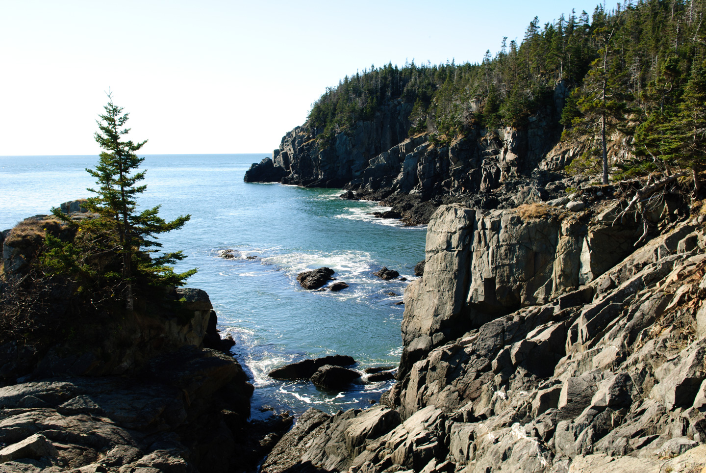 It wasn't a long drive from here to Cutler for a hike on the Bold Coast. If you look at the PDF file hiking trail map, we didn't do the full hike, but took the cutoff trail reducing the hike to 5.5 miles. The coastline is dramatic!! Full of craggy cliffs. We took loads of pictures. The hike through the woods was fabulous as we went through many different types of woods, from green moss, to dense conifers, to peat bogs, and open meadows.