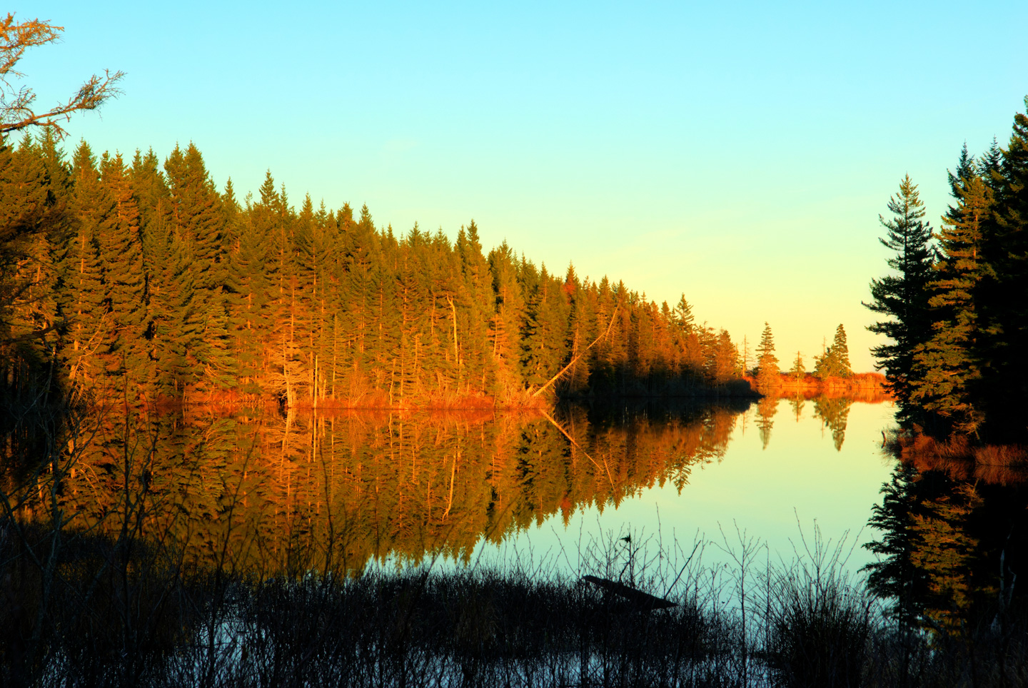 We drove through Jonesport tried to find a spot to watch the sunset over water, but no luck. Without the clouds to enhance our pictures it is not a big loss tonight.
