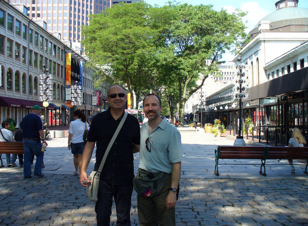 Francesco came back with Paul to Massachusetts and stayed at our house for the weekend. On Saturday, we went in to Boston. Luckily, although it was hot, it was not AS hot as what they experienced in NYC. After parking at Sargent's Wharf in the North End, we took a short walk along part of the Boston Harborwalk (where the 1st picture was taken) and by the Marriott's Custom House Tower hotel. This looks like a pretty neat hotel to stay in!