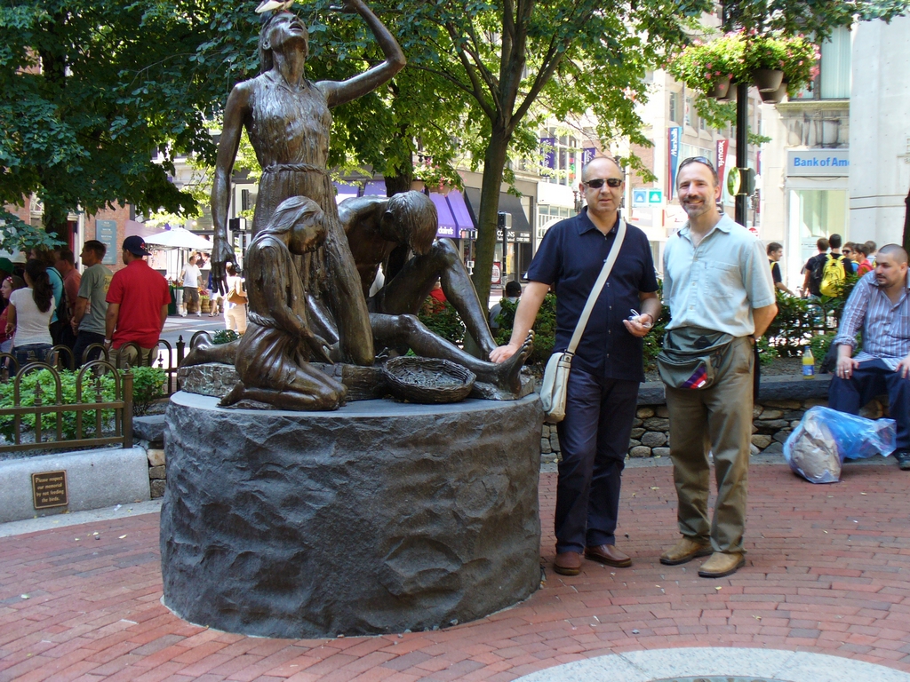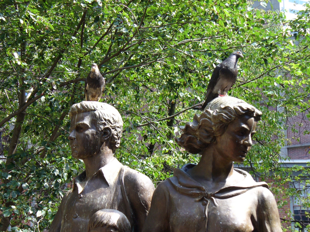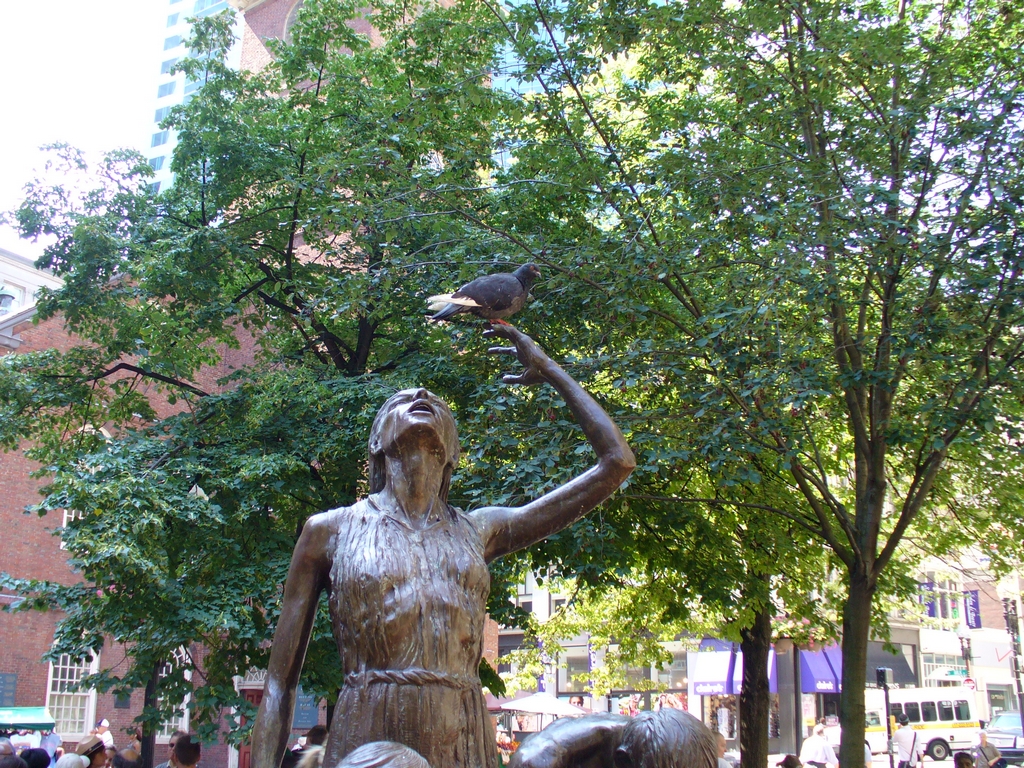 We walked by the Old South Meeting House (explaining it's significance to Francesco, with liberal help from the sign on the building), and looked at the Irish Famine Memorial. Some pigeons were decorating the statues for us.