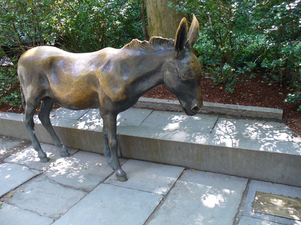In the courtyard of the Old City Hall was a cute donkey statue. It represents the Democratic party. I recently read it became a symbol for the party as far back as 1828 because Andrew Jackson used it after some people called him a 'jackass' (instead of Jackson - get it?). Next to the donkey were a couple of footprints standing 'in opposition', with the elephant symbol in them.