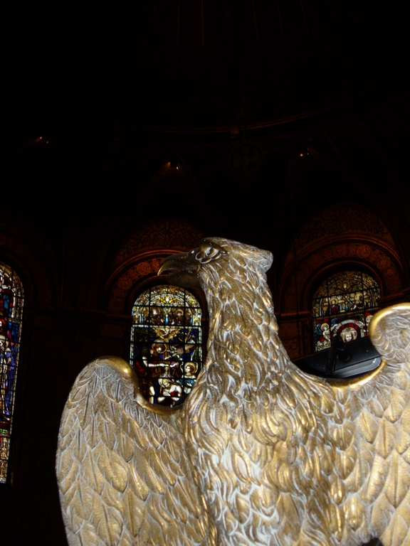 Trinity Church is a lovely building, opened in 1877. The use of different colored stones and many other Romanesque design features were copied extensively during the rest of the 19th Century. It is still an active Episcopalian Church as well as being a tourist destination. The interior is striking, with deep red walls and beautiful stained glass windows. The windows depict various scenes from the Bible.