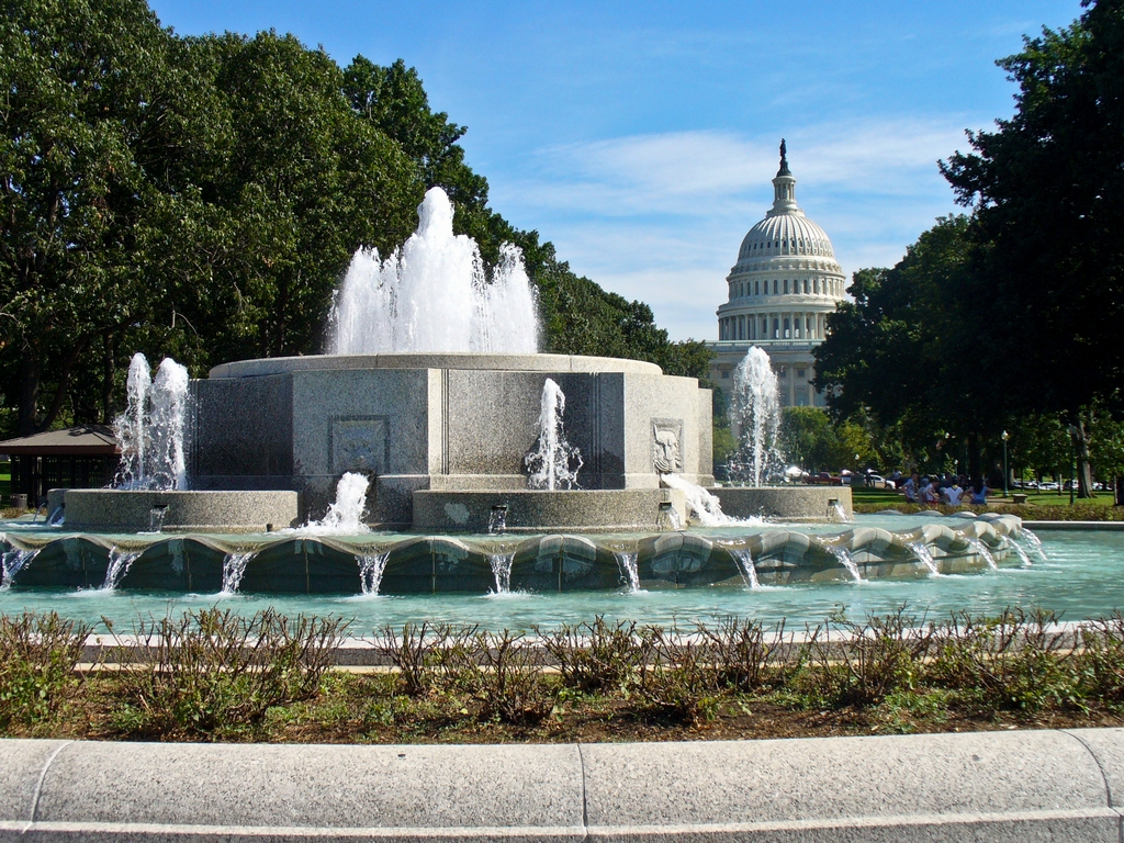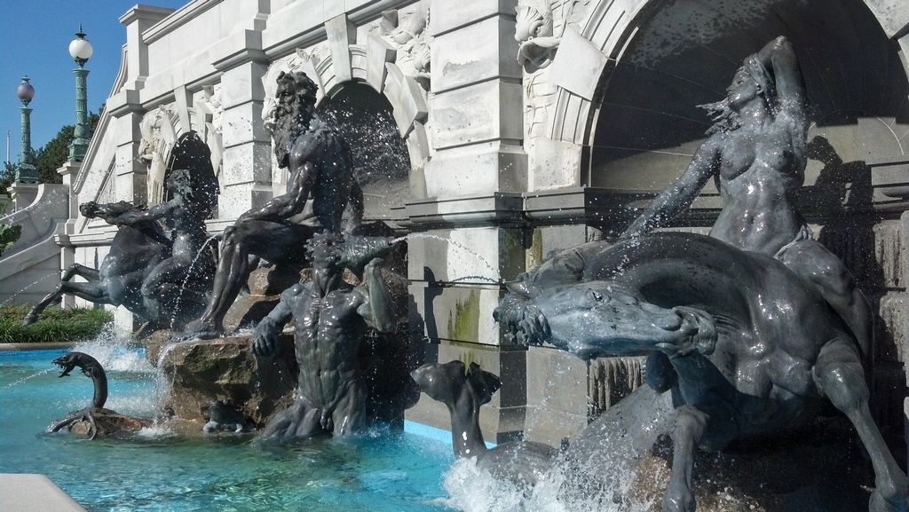 The fountain in front of the Library of Congress depicts Neptune's court.