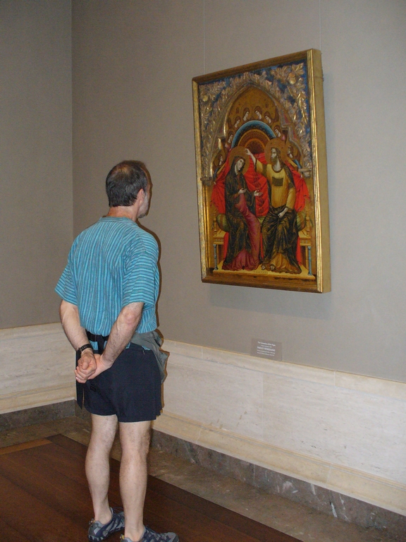 Day 3 and day 4 - National Gallery of Art. This is not part of the Smithsonian Museums, but also has free admission and is on the mall. There are 2 buildings, the West, which is the older one, and the East, which is newer and houses much of the more recent art. We did 2 tours Thursday morning, both led by the same volunteer docant. "Early Italian to Early Modern: An Introduction to the West Building Collection", and then "1900 to Now: An Introduction to the East Building Collection". To be a tour leader, you have a year of training and then have to create your own tours based on the topics. The tours were very good. For the 1st one, she selected representative works from different eras or regions and described some of the evolution of art. For the 2nd tour, she talked a lot about the very interesting building, as well as some of the drivers for the art work to change from one movement to another in the 20th century.