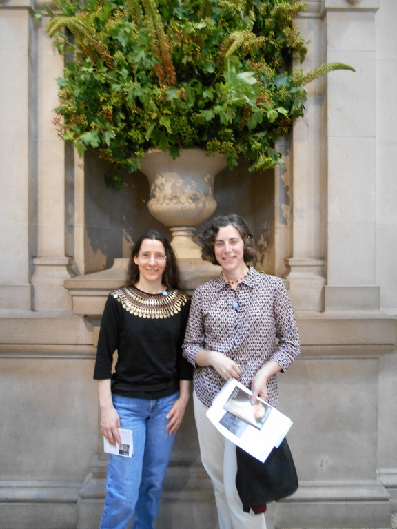 The Met is open! Here is a slightly out of focus picture of Anne and Lisa in the lobby of the museum. Notice the nice little entrance medallions we have; they museum is stopping their use after July 1st! Also notice my fab Met Egyptian Nefer collar shirt.