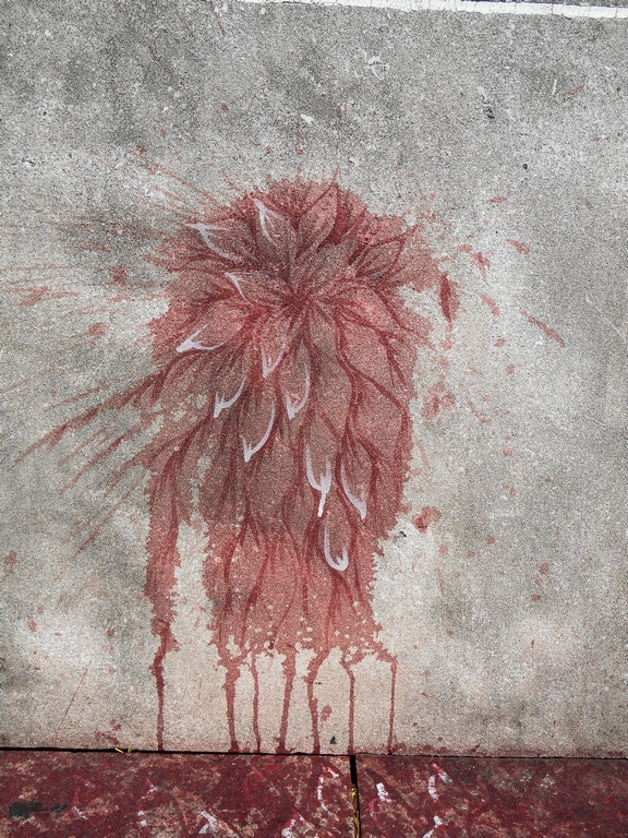 Our first stop was the roof garden exhibit. This was a flat exhibit; we felt slightly bad walking on it but it is of course designed for that. It was by an artist named Imran Qureshi, and was intricate floral designs based on historic Mughal miniatures, but in a blood red color to decry bombings in the streets.