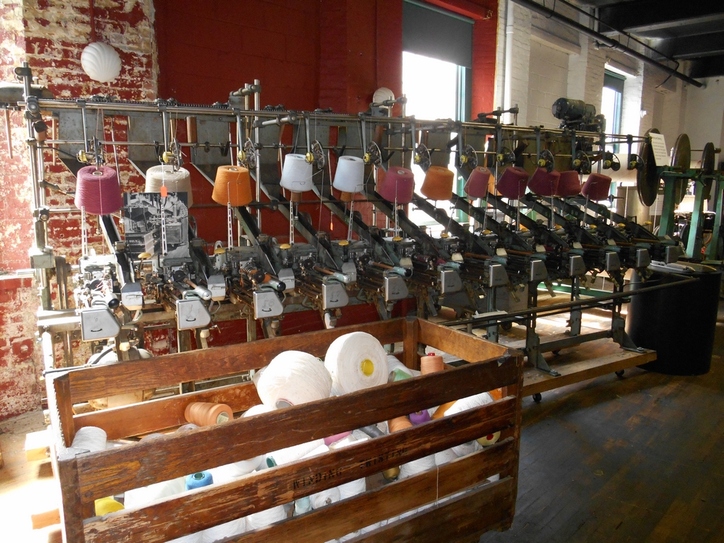 One of Gerry's tasks when he worked at the mill was to keep the bobbins filled for the looms. Of course, these bobbins don't look like a home sewing machine bobbin. This machine winds the bobbins: