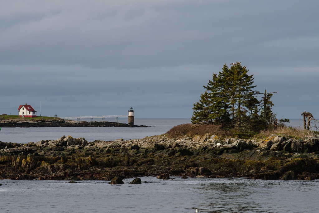 We saw Osprey in other locations as well, just not as densely populated. Here is a picture of Ram Island Lighthouse, and the small island in front of it that has an Osprey nest. At the right of this next picture is the next, and there is an Osprey showing both in the next (on the edge of it) and just above the trees, flying in.